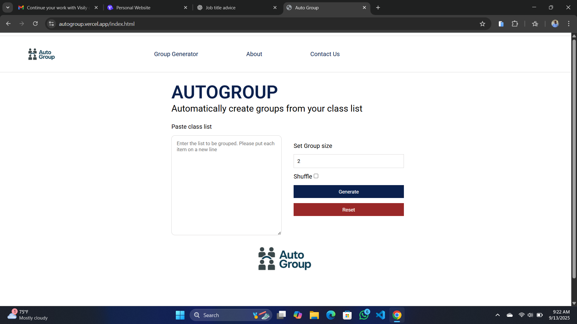 Auto Group is a web application designed to help users easily create random groups from a list of names. Whether you're organizing teams for a project, planning group activities, or just looking to mix things up, Auto Group simplifies the process of group formation.