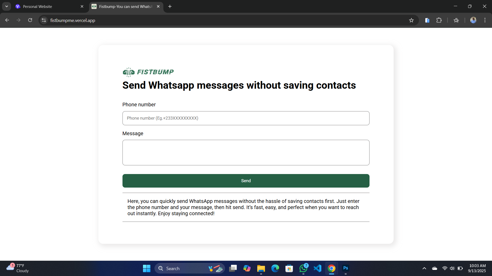 A web app that makes connecting on WhatsApp faster by letting users send messages without saving phone numbers
